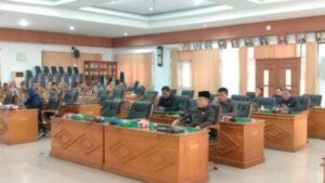 Bengkulu Utara,fahrinews.com– Rapat Badan Musyawarah DPRD Kabupaten Bengkulu Utara dengan agenda Pembahasan Penyampaian Jawaban Pihak Eksekutif atas Pandangan Umum Fraksi Fraksi DPRD Kabupaten Bengkulu Utara terhadap, Rancangan Peraturan Daerah, tentang Pertanggungjawaban Pelaksanaan Anggaran Pendapatan dan Belanja Daerah Tahun Anggaran 2023 dan Rancangan Peraturan Daerah tentang Rencana Pembangunan Jangka Panjang Tahun 2025-2045, Tempat acara di gelar di ruang rapat DPRD kabupaten Bengkulu Utara. Selasa (11/06/2024).