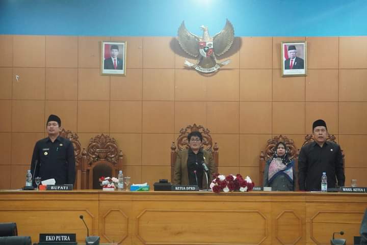 Bengkulu Utara, fahrinews.com – Rapat Paripurna DPRD BU Jawaban Eksekutif, Wabup BU Terhadap Pandangan Umum Fraksi Pemerintah Kabupaten Bengkulu Utara, dalam hal ini Wakil Bupati Bengkulu Utara, Arie Septia Adinata, S.E, M.Ap, menghadiri rapat paripurna DPRD Kabupaten Bengkulu Utara dengan agenda penyampaian jawaban eksekutif terhadap pandangan umum fraksi – fraksi DPRD Kabupaten Bengkulu Utara terhadapa rancangan peraturan daerah tentang anggaran pendapatan dan belanja daerah tahun anggaran 2024, di Sekretariat DPRD BU Selasa (24/10/2023).